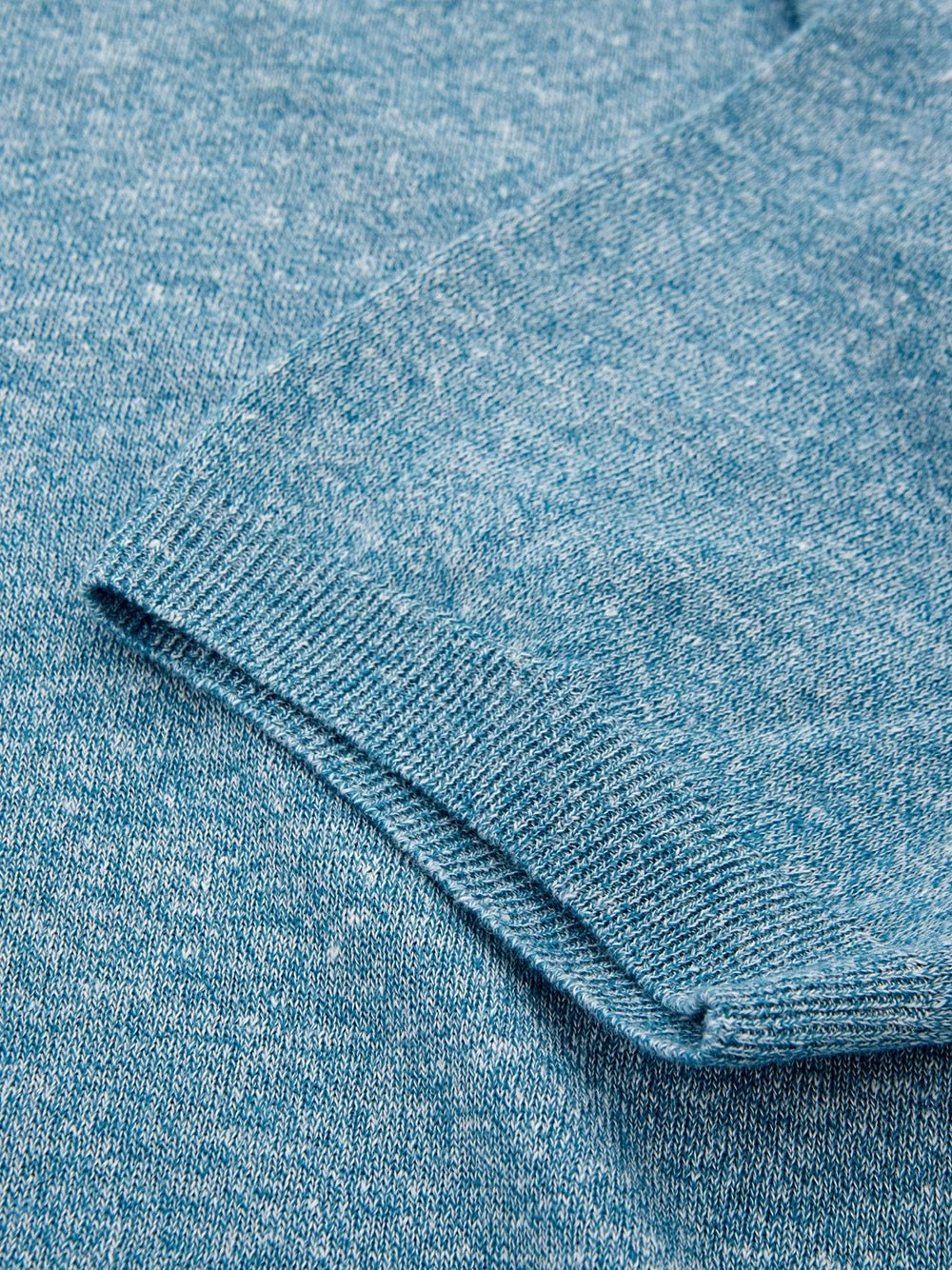 Model: grey full zip wool sweater, front zip closure, turtleneck, suede elbow patches in contrasting color
