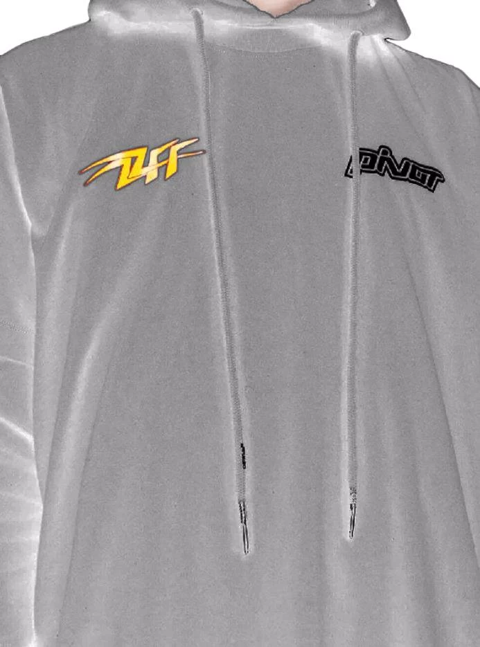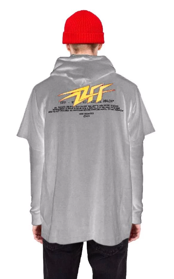 Off-White cotton sweatshirt with t-shirt sewn on: t-shirt area with front and back logo prints, hooded sweatshirt with drawstring, large front pocket