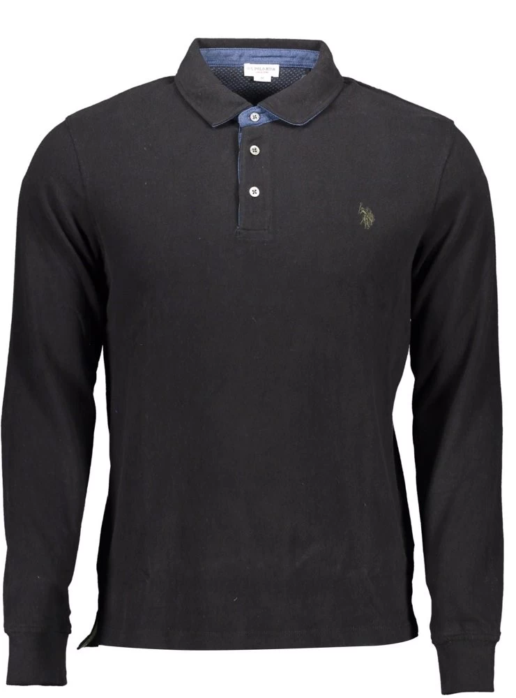 Long-sleeved polo shirt, 3 buttons, elbow patches, contrasting details, logo